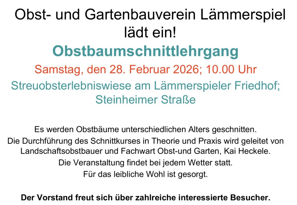 Winterschnittkurs am Samstag, 28.02.2026 um 10:00Uhr mit Kai Heckele